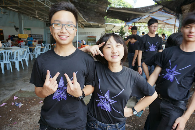 As usual, we go to school wearing our PJ clothes and jeans, we waited in class, unfortunately our form teacher wasn't going with us cuz apparently she has a wedding dinner. After the bell rings, our monitor marked the class's attendees and they started giving out our class shirt!!! It's special cuz we have our numbers according to our class number, and our names at the back. What is not special that is, most of the classes have the same design too. Maybe it is the "fashion style" for now.